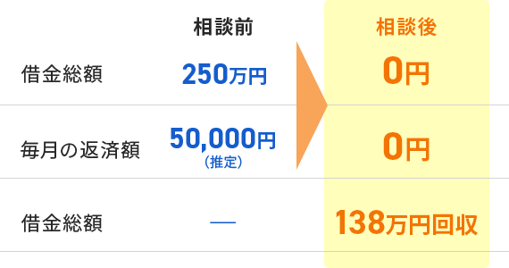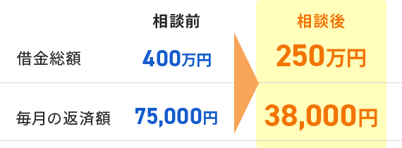 ※解決の結果は、借入内容・取引状況に個人差があるため、必ずしもこのような結果になるとは限りません。